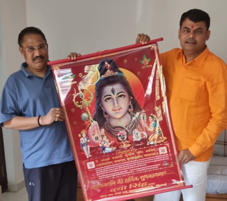 अतुल शर्माभिलाई। बोलबम सेवा एवं कल्याण समिति के अध्यक्ष दया सिंह ने महाशिवरात्रि पर्व के पर्व भगवान भोलेनाथ के बारात का आमंत्रण कार्ड एवं भोलेनाथ जी का कैलेंडर आज राज्य सभा सांसद सरोज पाण्डेय, पूर्व विधानसभा अध्यक्ष प्रेमप्रकाश पाण्डेय, दुर्ग सांसद विजय बघेल, भाजपा के पूर्व प्रदेशाध्यक्ष विक्रम उसेंडी, पूर्व मंत्री रमशीला साहू को देकर बारात में शामिल होने के लिए आमंत्रित किया। इस दौरान समिति के कमलेश यादव, विवेक कोसल, देवेन्द्र यादव, प्रशांत कुमार, प्रमोद सिंह, अजय साहनी, राकेश चोधरी, राकेश प्रसाद, दिलीप शर्मा, श्रीसेंगर उपस्थित रहे। उक्त जानकारी समिति के प्रदेश प्रवक्ता अभिजीत विश्वास ने दिया।